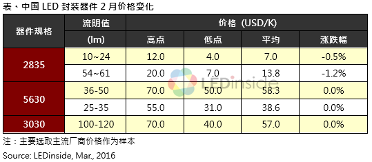 - LED需求增速不明显,2月全球LED灯泡价格稳中有降